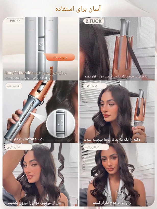 این دستگاه از فناوری پیشرفته چرخش خودکار برخورداره تا موهای شما را بدون دردسر بپیچد 👩🏾🦱