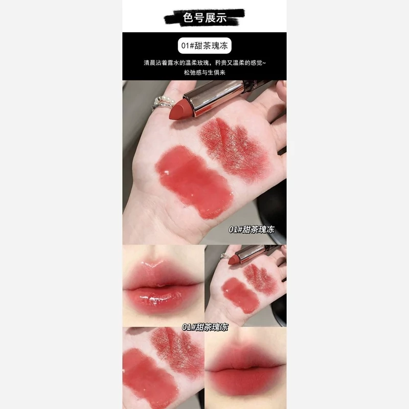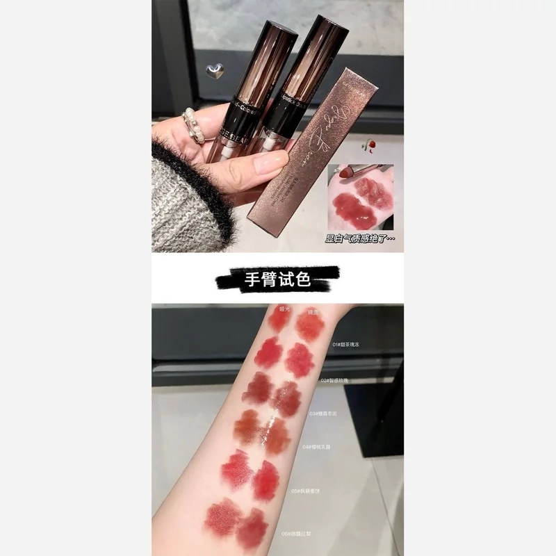 دیگه لازم نیست بین رژ جامد مات و برق لب انتخاب کنی چون این رژ یه سر رژ مات مخملی برای یه ظاهر شیک و یه سر برق لب شفاف برای درخشش بیشتر.