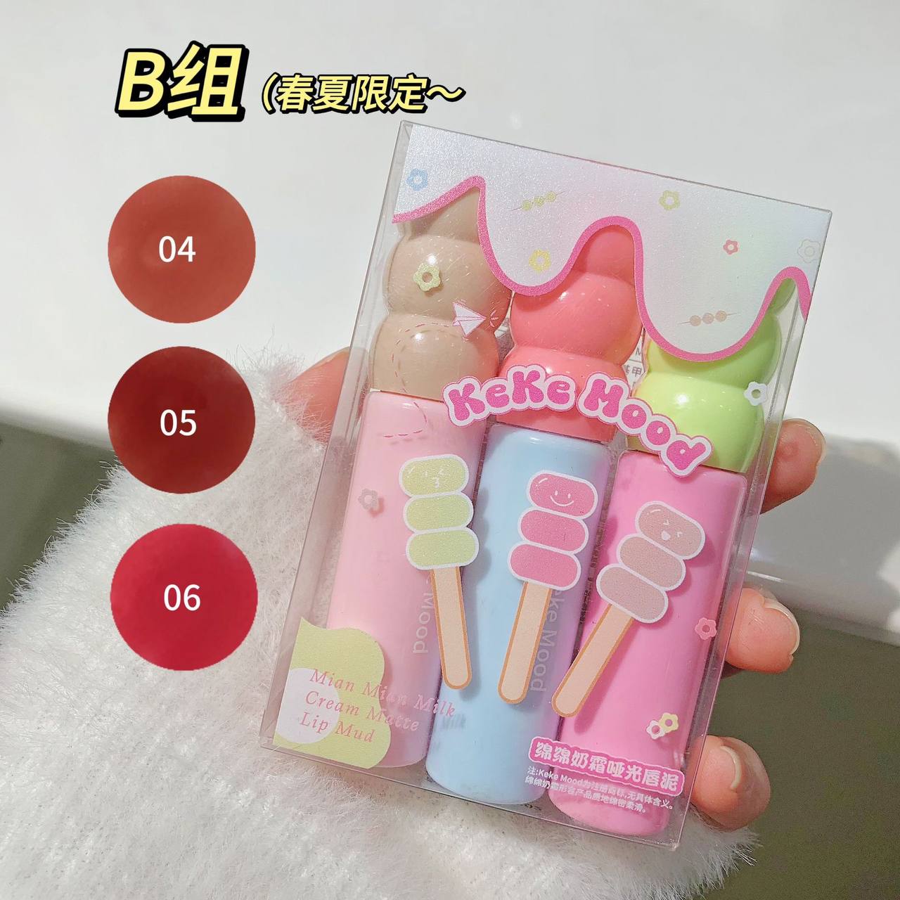 هر پک 3 عددی می باشد ماندگاری بالایی داره ضد ابه فاقد سربه با رایحه ی فوق العاده عالی جنسش مخملی و مات 24 ساعته اما مخملیه یعنی به هیچ عنوان بعد استفاده لبت ترک نمیخوره و پوسته نمیشه