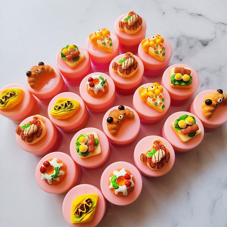 بالم لبهای خوشمزه و فانتزی با طراحی مینیاتوری خوراکی🥐🥮🌭🍓🍳